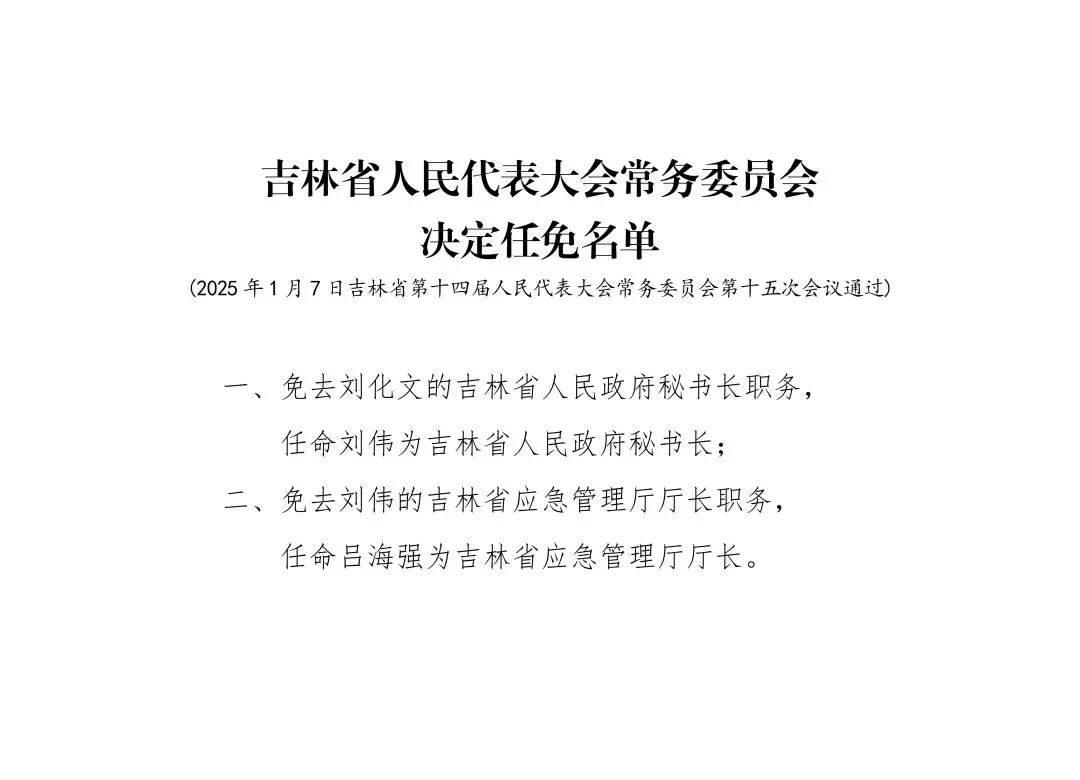 吉林省人民代表大會常務(wù)委員會決定任免名單
