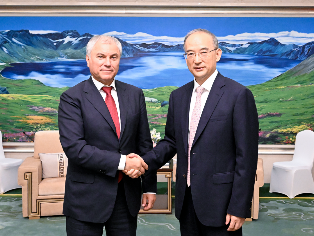 沃洛金表示,今年是蘇聯(lián)偉大衛(wèi)國戰(zhàn)爭、中國人民抗日戰(zhàn)爭暨世界反法西斯戰(zhàn)爭勝利80周年,俄方愿同中方共同紀(jì)念這一段并肩作戰(zhàn)的歷史,緬懷先烈,共創(chuàng)美好未來。吉林經(jīng)濟(jì)社會(huì)發(fā)展取得的成績令人印象深刻,希望吉林與俄地方密切交流、加強(qiáng)合作,俄國家杜馬愿在這方面發(fā)揮積極作用、提供有力保障。