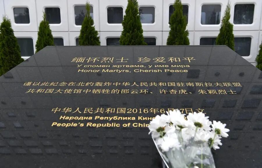 中國(guó)國(guó)家元首親臨被炸使館舊址憑吊英烈,打動(dòng)國(guó)人心。鐫刻“緬懷烈士 珍愛(ài)和平”的碑石豎立在異國(guó)土地上,涵義深遠(yuǎn)。