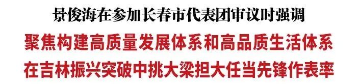1月25日,景俊海代表到長(zhǎng)春市代表團(tuán)參加審議。他強(qiáng)調(diào),要深入貫徹習(xí)近平總書(shū)記在新時(shí)代推動(dòng)?xùn)|北全面振興座談會(huì)上的重要講話精神,聚焦構(gòu)建高質(zhì)量發(fā)展體系和高品質(zhì)生活體系,充分發(fā)揮“一主”輻射帶動(dòng)作用,在新時(shí)代吉林全面振興率先突破中挑大梁、擔(dān)大任、當(dāng)先鋒、作表率。